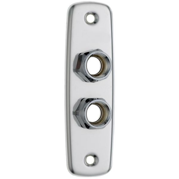 Art.nr: 2362865Rustfri 2-hulls veggskive med blankpolert overflate til A-kule og A-kobling.For 15 Cu-rør.C/C-avstanden mellom hullene er 40 mm, og begge har innvendige G15-gjenger.Inkl. koblingssett.