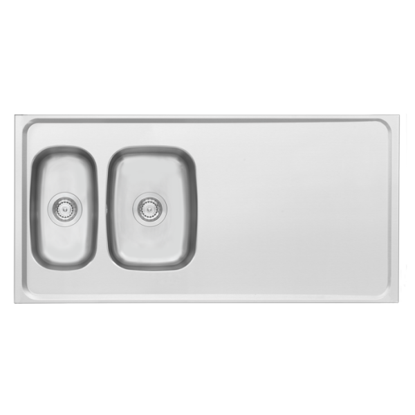 Art.nr: 3086550Vendbar kjøkkenvask, 1220 x 600 x 30 mm, leveres med vannlås og 2 avstengbare kurvventiler. Liten/stor oppvaskkum.