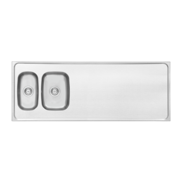 Art.nr: 3086563Vendbar oppvaskbenk på 1620 x 600 x 30 mm som leveres med vannlås og 2 avstengbare kurvventiler. Liten/stor oppvaskkum.