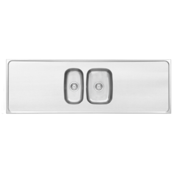 Art.nr: 3086570Vendbar kjøkkenbenk/vaskebenk 1820 x 610 x 30 mm som leveres med vannlås og 2 avstengbare kurvventiler. Liten/stor oppvaskkum.