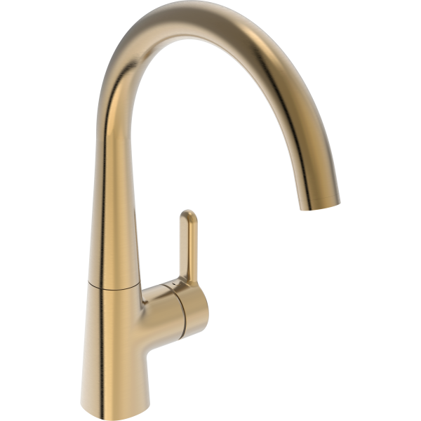 Kjøkkenkran med sidespak og høy svingbar tut. Tutens svingradius er forhåndsinnstilt til 120° (kan begrenses til 0° eller 60°).