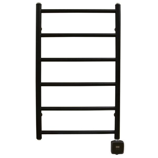 Somatherm Hungvik moderne håndkletørker med stram og stilren utforming. Styringen Olle har innebygd dimmer og timer, effektregulering i fem trinn samt innstilling av fem ulike tidsintervaller fra 2 timer opp til 10 timer. Olle kan også styres via app. Vanntilkoblingen kobles til det eksisterende radiatorsystemet (ikke VVC). Når varmesystemet er slått av i sommerhalvåret, stenger man radiatortermostaten og slår på elpatronen. På denne måten holdes kondens og fukt borte også om sommeren.