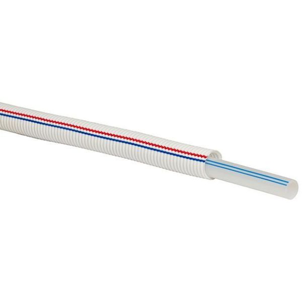 Art.nr: 2813671Uponor Combi Pipe 2419621 er et PEX-rør for både tappvanns- og radiatorsystemer. Med hvitt beskyttelsesrør med en blå og en rød stripe.