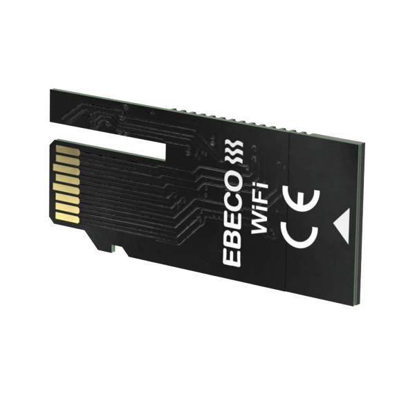 Ebeco EB-Connect er en Wifi-modul som gjennom et enkelt håndgrep settes inn i termostaten og blir en del av ditt smarte hjem. Med modulen kan EB-Therm 500 utvikles fra en gulvvarmetermostat til et system som kan styres via appen Ebeco Connect eller det åpne API-et.