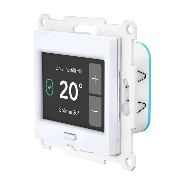 TRM-01 er en termostat for elektrisk gulvvarme med skjerm for styring og visning av temperatur og varmenivå. Den tåler belastning opp til 16 A, har innebygd romføler og medfølgende gulvføler. Den kan også brukes sammen med eksisterende gulvføler eller som regulator (PWM). TRM-01 kan automatiseres for energibesparelse, for eksempel med dag- og nattsenking. Med Gateway (GWY-01, ikke inkludert) kan produktet fjernstyres. Passer med hvit ramme fra Schneider Exxact®.