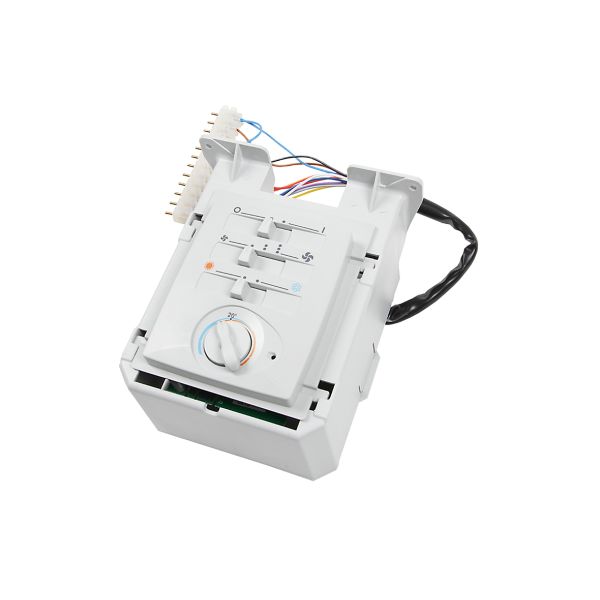 Styreenhet CBT, termostat og hastighetsbryter for montering i Carisma viftekonvektor, utstyrt med hurtigtilkobling. For modell med kapsling. 120x170x150 mm (LxBxH). 230 V, 50 Hz. Hvit ABS-plast.