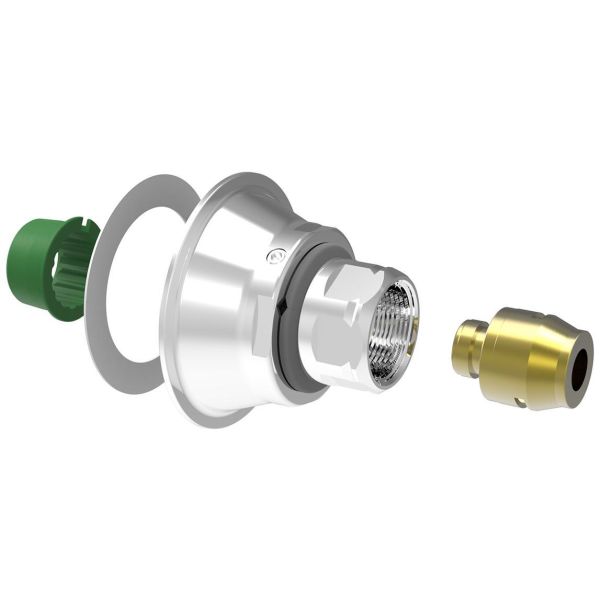 Art.nr: 3051068Koblingsskive for tilkobling av 16 mm PEX-rør, uten skruehull gjennom fliser og membran.